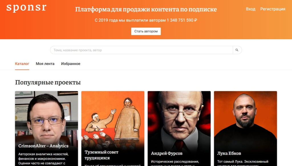 Sponsr позиционируется как платформа продажи контента по подписке и регулярно публикует показатели по выплатам авторам.