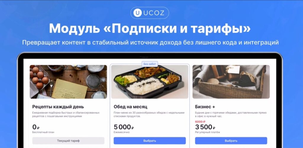 uCoz (модуль «Подписки и тарифы»)Донаты/подписки на своём сайтеМаксимум контроля: уровни поддержки, управление донорами, свой дизайнМедиа, образовательные проекты, комьюнити, авторские сайты